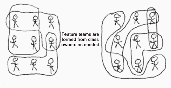 Each feature is assigned to a team member who then becomes a "class owner"; this means they take ownership of that feature. Each feature the developer is given ownership of now forms part of their workpackage. It is now their responsibility to deliver that feature and in doing so become the expert on that feature. If another team member needs information on that feature this person is whom they would turn to first.