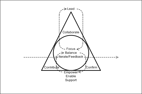 Leadership in the Context pattern and focus in the Core pattern are interdependent, and empowerment in the Core-Context pattern and balance in the Core pattern are interdependent. Within these relationships, if one element of a pattern suffers, the other element in the other pattern suffers and ultimately the degradation of one pattern impacts the other pattern. These patterns are interdependent and form a system or paradigm for understanding agility.