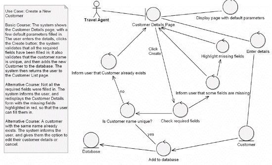 Note that in the book, we take the "Create a New Customer" use case and robustness diagram through several iterations, using the robustness diagram to polish up and "disambiguate" the use case text. For brevity we just show the finished version here).