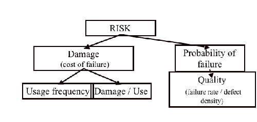 Risk is the product of damage and probability for damage to occur. The way to assess risk is outlined in figure 1 below. Risk analysis assesses damage during use, usage frequency, and determines probability of failure by looking at defect introduction.