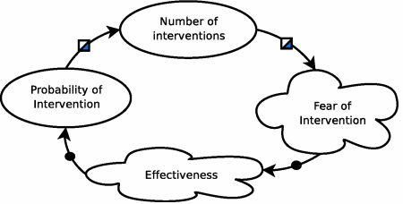 I used this diagram to understand the fear of intervention, when I encountered it again at a new client. I had been "there" before, one has to make the same mistake twice (or more) to understand it...