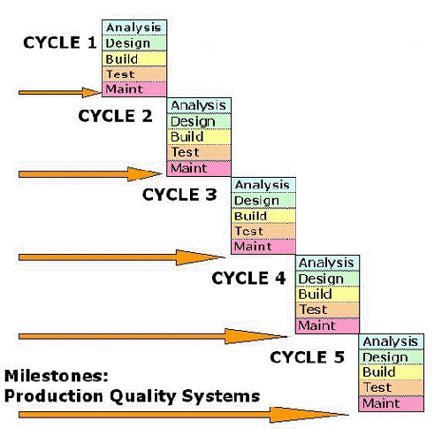 This contrasts with the conventional Waterfall approach that is based upon a fixed plan and set of requirements and the completion of a sequence of individual processes, the entire sequence leading to a single delivery of a completed system.