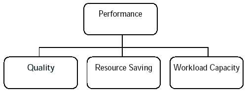 One possible way is to think of the general characteristics of these objectives. For example, you may wish to make better X, save Y, or do more of Z. Put more formally, performance requirements might be thought of as broken down into the three following types: Quality, Resource Saving, Workload Capacity.