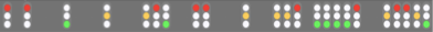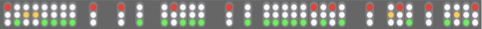 Figure 1: A test run log from a pair of TDD beginners. Red means failing tests, amber is compiler or syntax error, and green is passing tests. Time moves forward on the x axis.