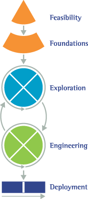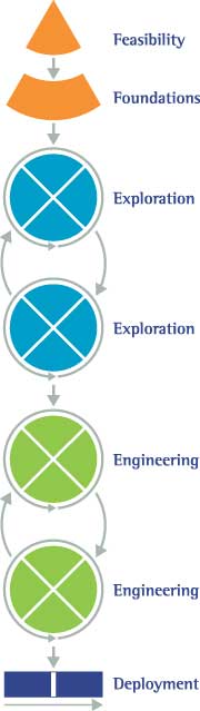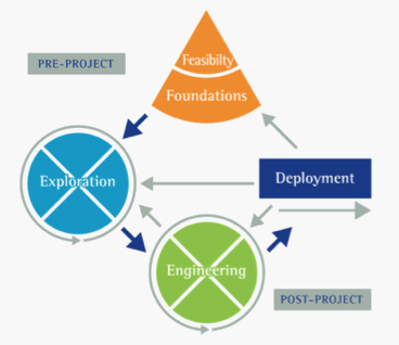 The Exploration and Engineering phases are often merged, as the method is flexible, allowing them to be organized to best suit the situation. Some examples are provided below: