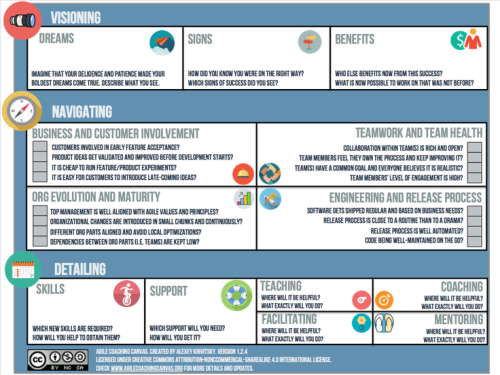 The Agile Coaching Canvas is a compact and illustrated guide that you can use to keep dreaming and help others to.
