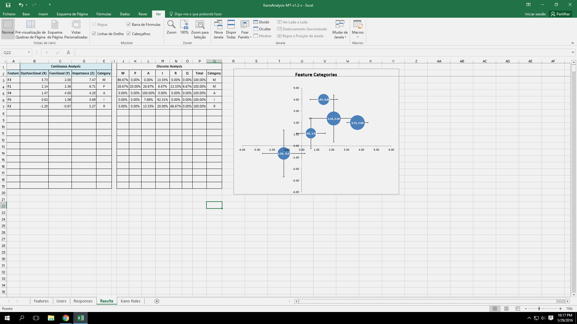 - Export responses from the Google Form and paste results into the 'Responses' sheet. Note the field order the analysis spreadsheets expects, and also that each Functional/Dysfunctional answer should be one of: "I like it", "I expect it", "I am neutral", "I can tolerate it", "I dislike it"