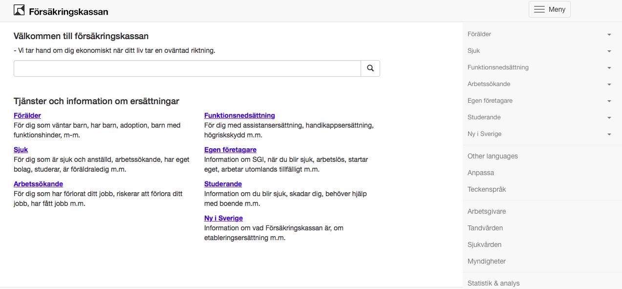 Another question to be discussed was if we could scale the concept to other customer groups than just the private citizens. About 90% of the visitors are private citizens, but the other customer groups are also important. A special challenge is that for the customer experience for the private citizens to work, it needed to work also for the other groups. For example, long-term sick citizens who are employed need their employer to register that their employee has been away in order for the employee to get their benefits. We did not make any usability studies for the customer groups but it was important to verify that these sections of the site can be included in the concept.