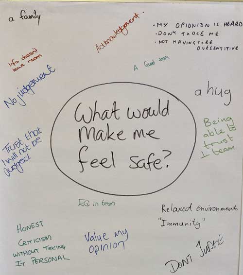 Example of the outcome of a "safe space" exercise performed at the beginning of a workshop