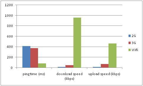 Figures 7 and 8 summarize the averages of our experiment for 2G, 3G, and WIFI networks.