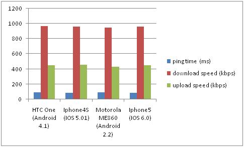 Figure 10. Graphic: Same network -WIFI, Different device: Iphone4S (iOS5.0), HTC One (Android4.1), Motorola ME860 (Android 2.2)