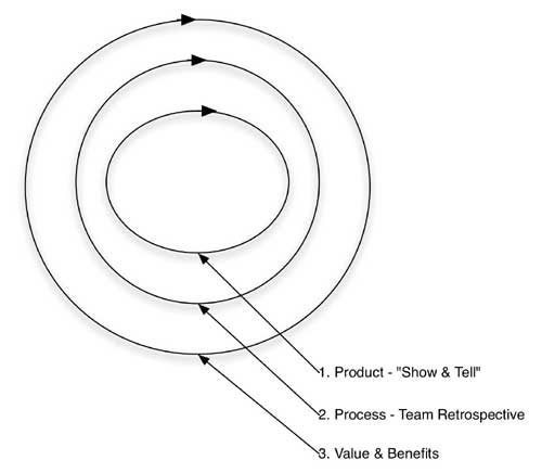 Most agile teams will undertake a regular "show and tell" to obtain feedback on what they have built. The better teams have a second feedback loop, a retrospective to improve their own working. Relatively few teams implement the third feedback loop to ascertain the value and benefit that they are delivering. Focus on the success troika renders this loop redundant, even dangerous.