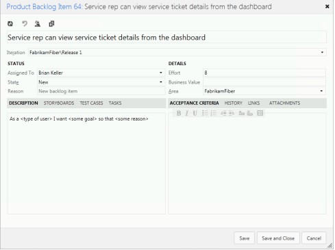 With product backlog items you could use the following use story style for the description (or title): -- As a [role] I want [feature] So that [benefit] --