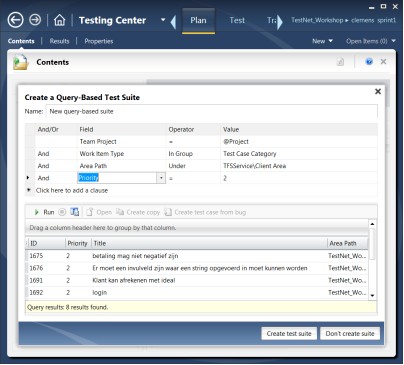 Figure 4: Microsoft Test Manager Query based test suite on priority