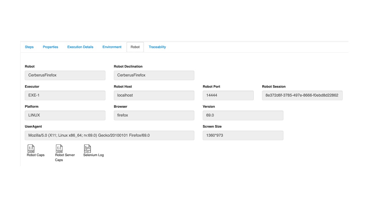 Robot : Traceability of your robot test infrastructure and browsers.