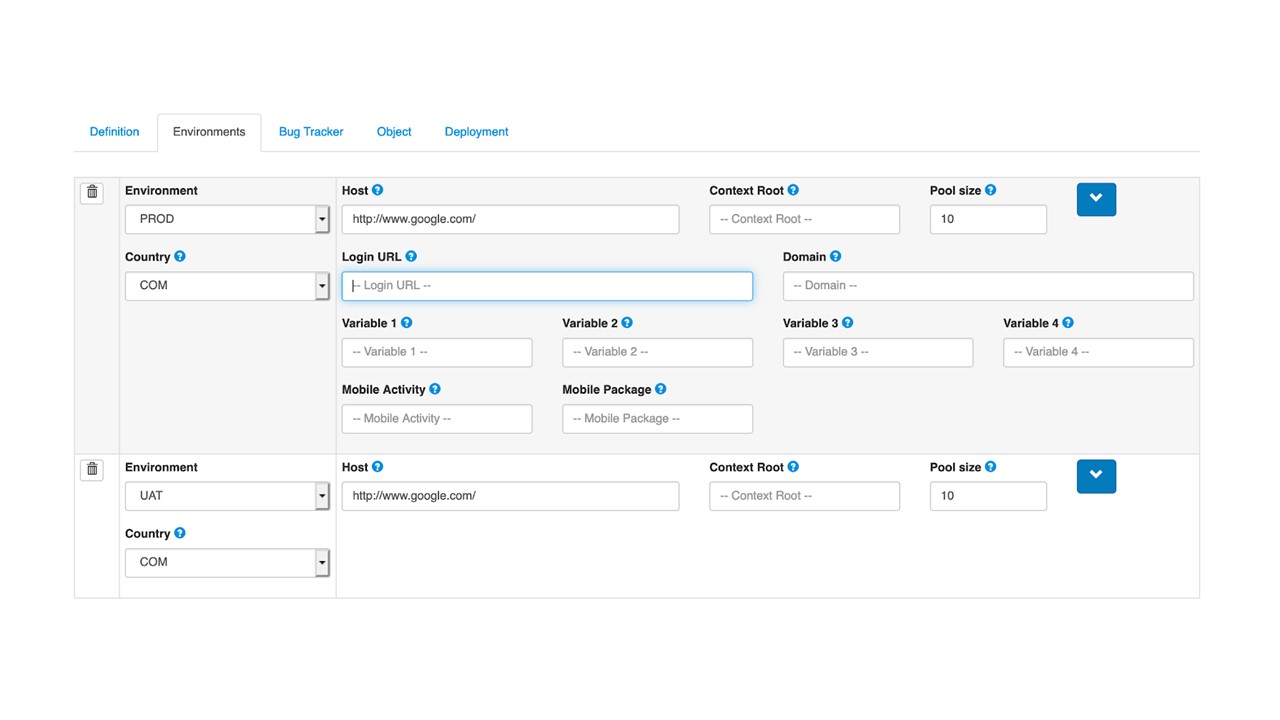 The final configuration defines the application environment with all the relevant information to reach your application under test. You can define here other environments for the same applications, which is useful when you want to expand your test suite.