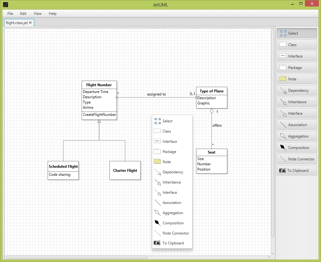 JetUML is a simple desktop open source Unified Modeling Language (UML) tool UML diagramming. The concept of JetUML is to provide the basic support for sketching software design ideas. JetUML currently supports the following UML diagrams: class diagrams, sequence diagrams, state diagrams, object diagrams and use case diagrams. Diagrams can be exported to image file format, and copied to the system clipboard for integration with other tools like word processing software for documentation.