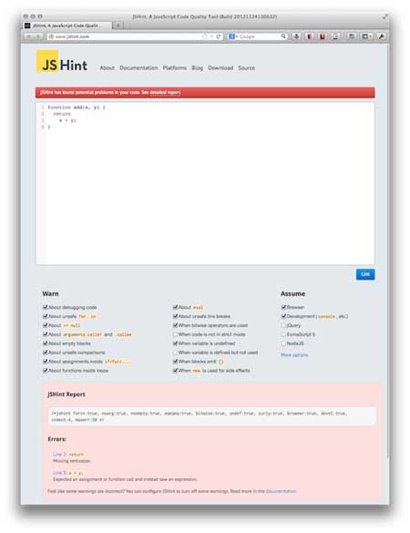 JSHint is flexible enough so you can adjust it to your particular coding style. This flexibility doesn't prevent JSHint from spotting many mistakes and potential problems in your code before you deploy them live.