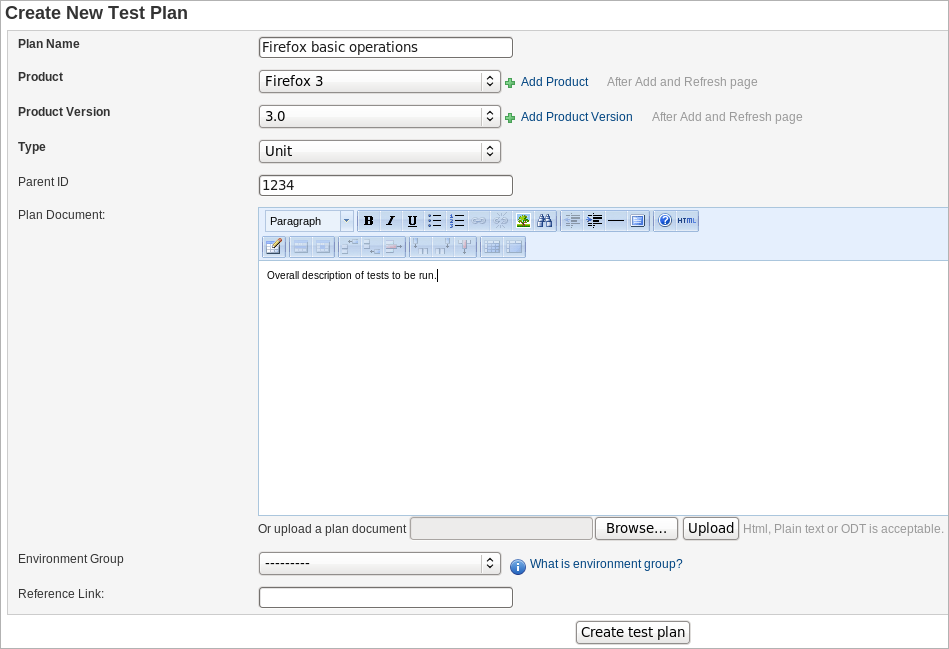 - WYSIWYG editor, TinyMCE at the moment, for test plan document and test case descriptions;