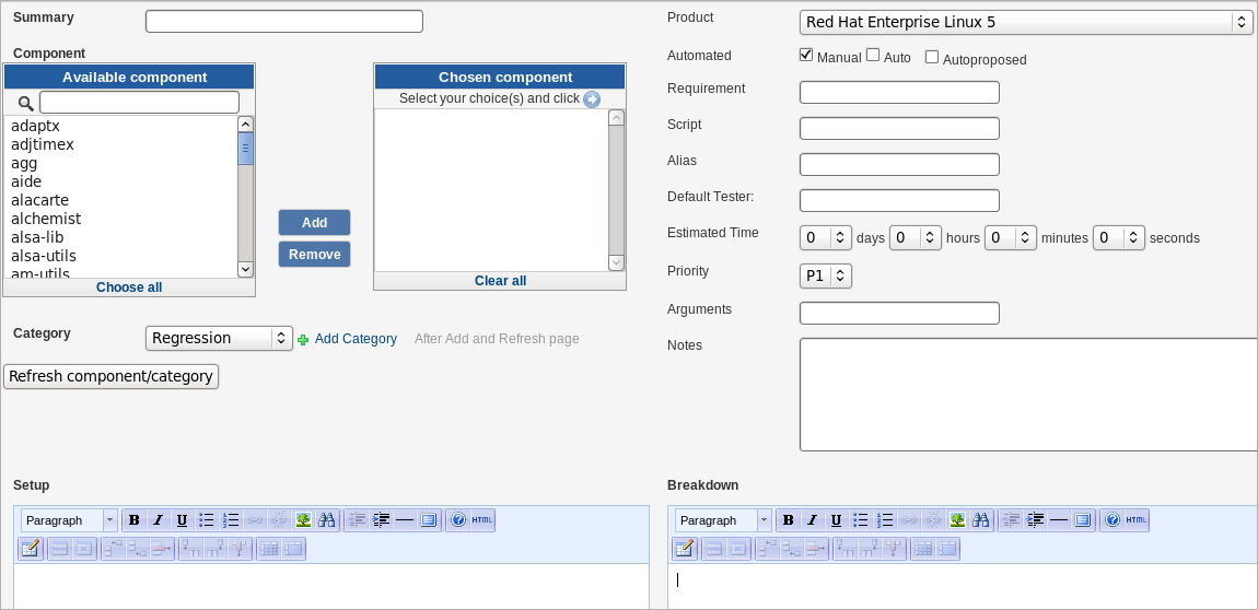 In this setup, the initial creation of test plans in Nitrate and their linking with Jenkins jobs are done manually. In this environment this is usually done when setting up testing for a new product. All subsequent test plans for that product are created as children of the master test plan and all of the test cases are extracted automatically by the test runner. Based on values from Nitrate, the Jenkins job knows how to schedule more jobs and kick off automated tests when necessary.