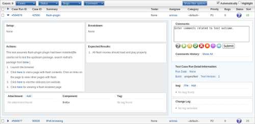 When the actual testing has been performed, either manually or automatically, the test case entry inside the test run is marked as PASSED or FAILED and the tester moves on to the next item.