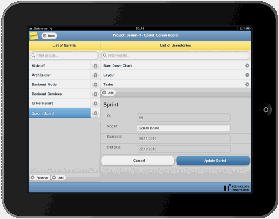 Figure 2: Sprint / User Story screen on an iPad