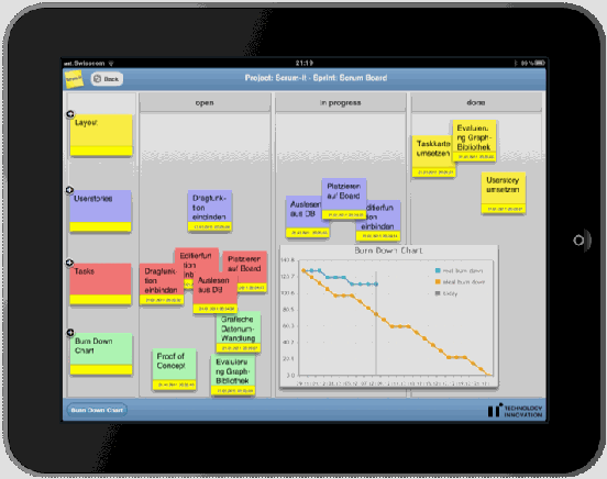 Figure 3 - Scrum Board with Tasks and Burndown Chart on an iPad