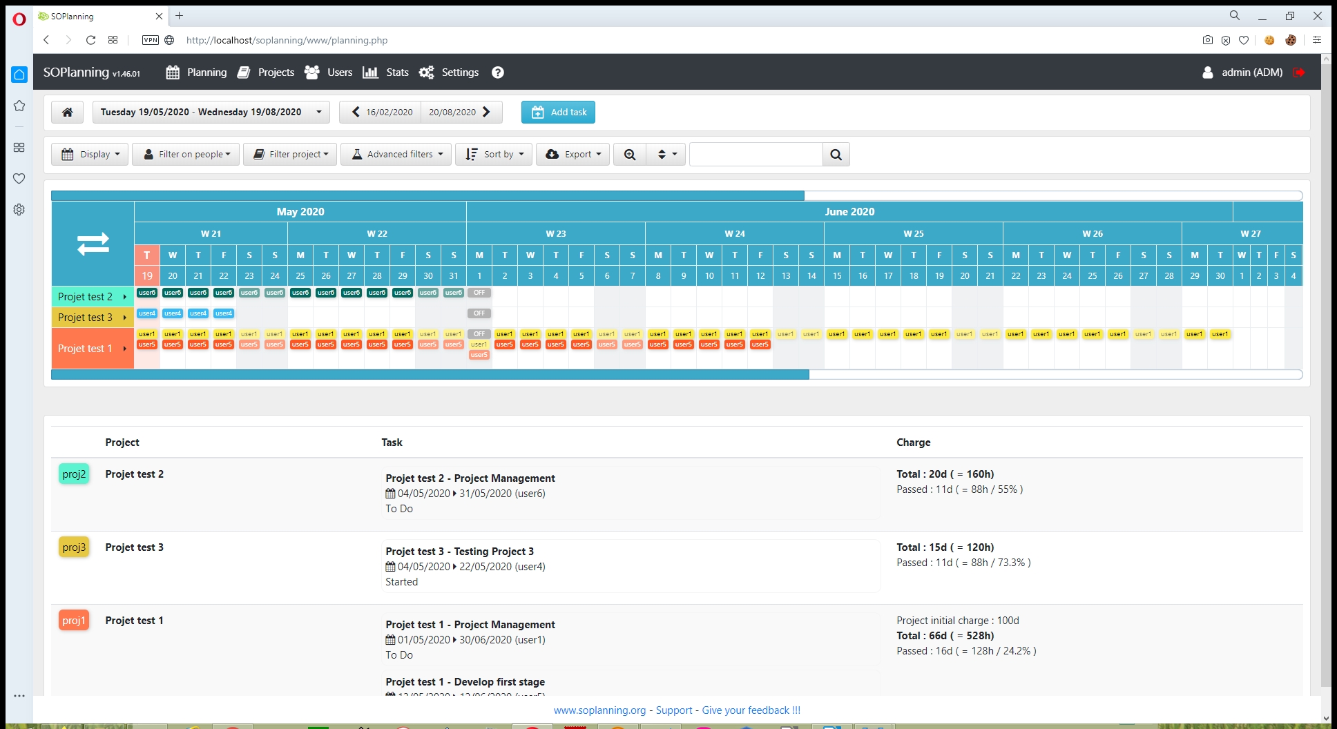 SO Planning achieves what it is built for: providing a simple tool to easily perform project planning with a good visual board. It is easy and intuitive to use, multi-language and can be installed quickly on any AMP platform. You can quickly understand all the concepts behind it and be productive. A paid hosted version is also available. The tool lacks the features (like task dependency) that might be needed for complex projects with a large number of task and people, but will satisfy the needs for smaller teams working on simpler projects. During my test, I have seen some minor, but non-blocking, bugs, maybe also due to my local configuration.