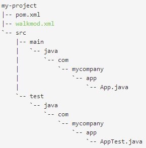 Add an empty file called walkmod.xml in the root directory of your project. This file is the core of a project's configuration in Walkmod. It is a single configuration file that contains the majority of information required applying the code conventions of a project in just the way you want. Using the standard maven project structure, it should be as follows: