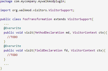 Code conventions are achieved by means of code transformations and Walkmod is completely extensible to allow developers to create their own code transformations or use existing ones by means of plugins.